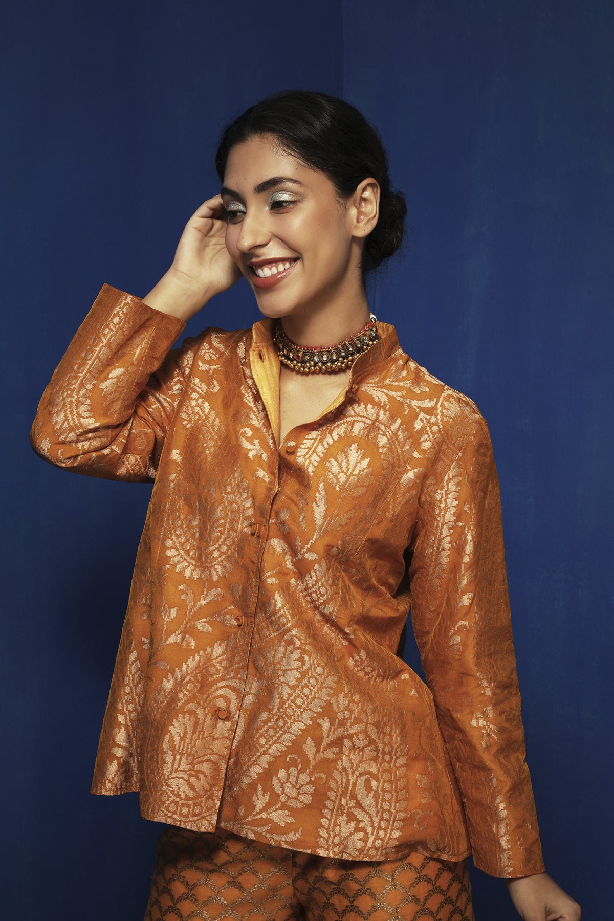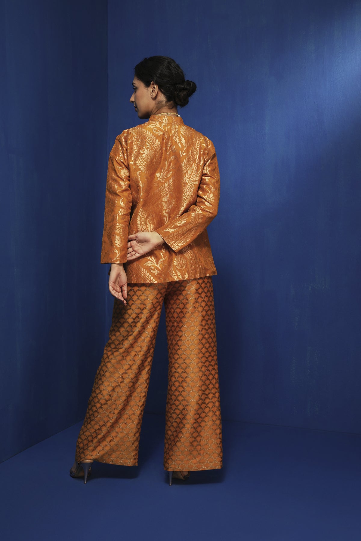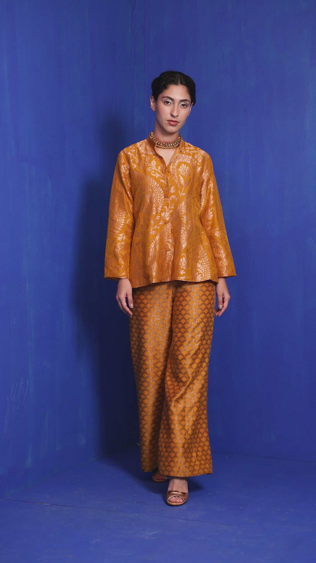Mustard brocade silk swing jacket