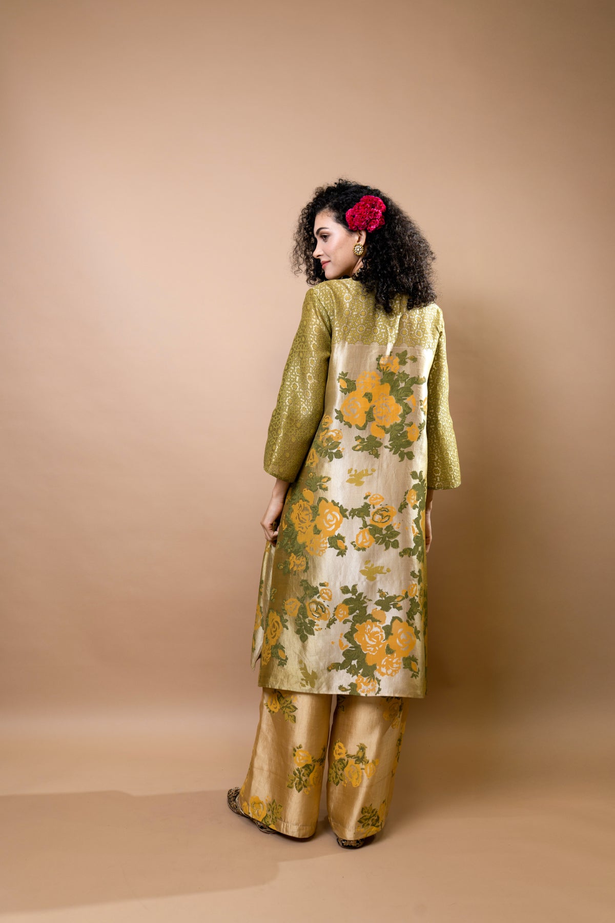 Olive Ombre Chanderi & Silk Block Printed Tunic Set