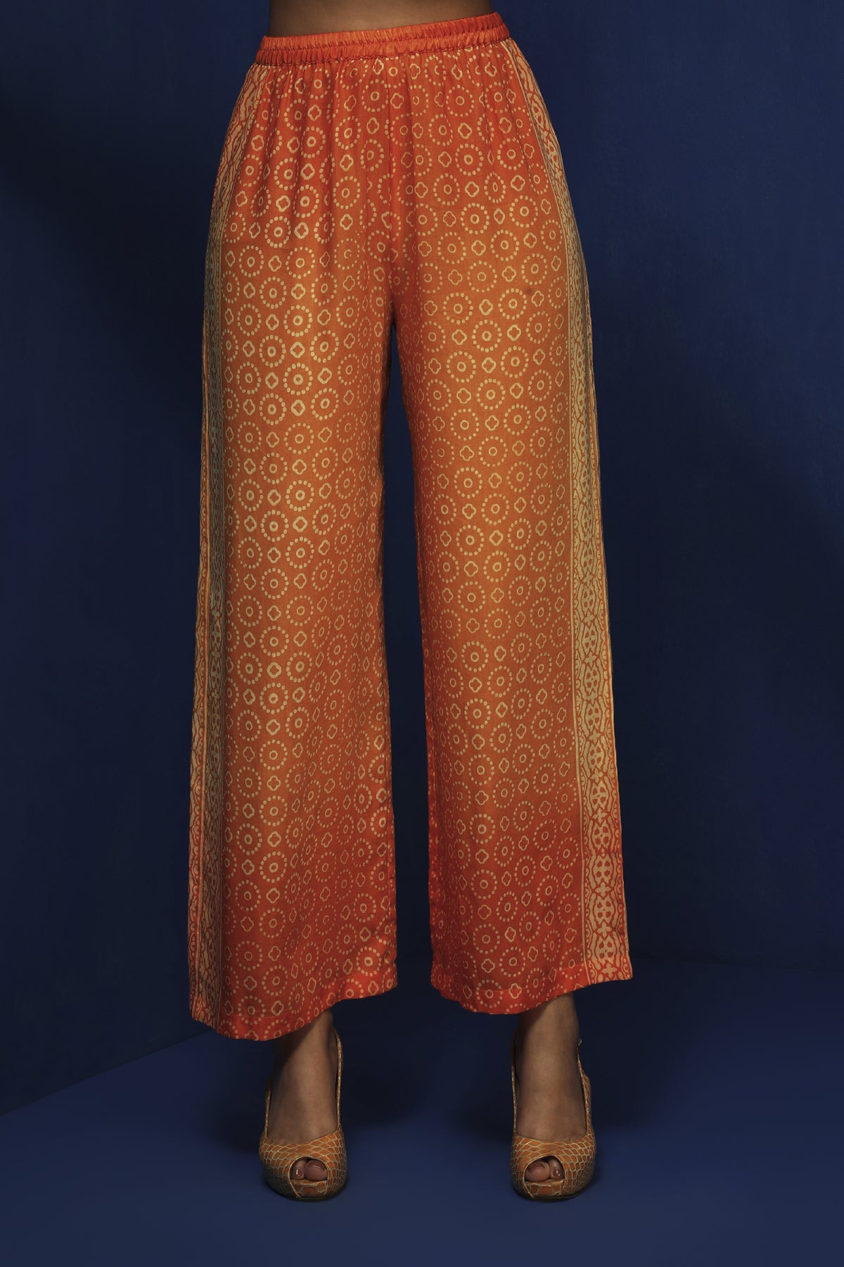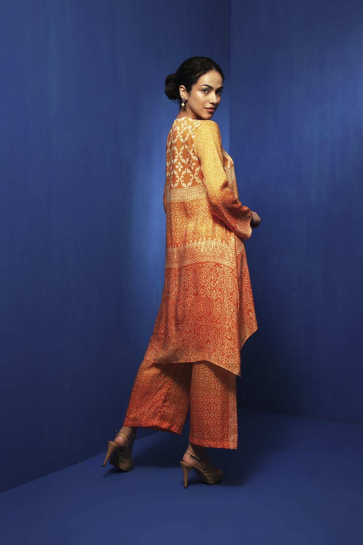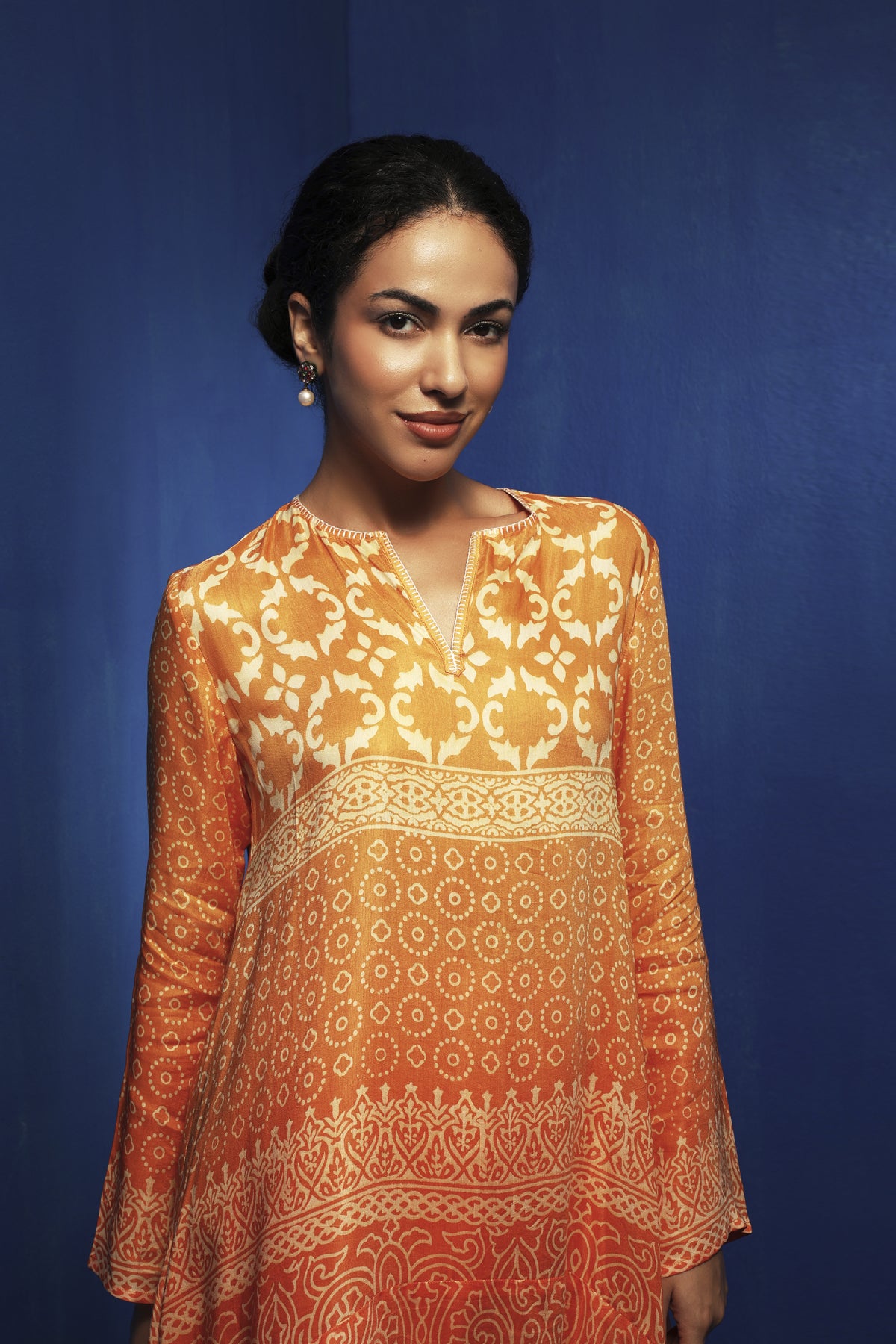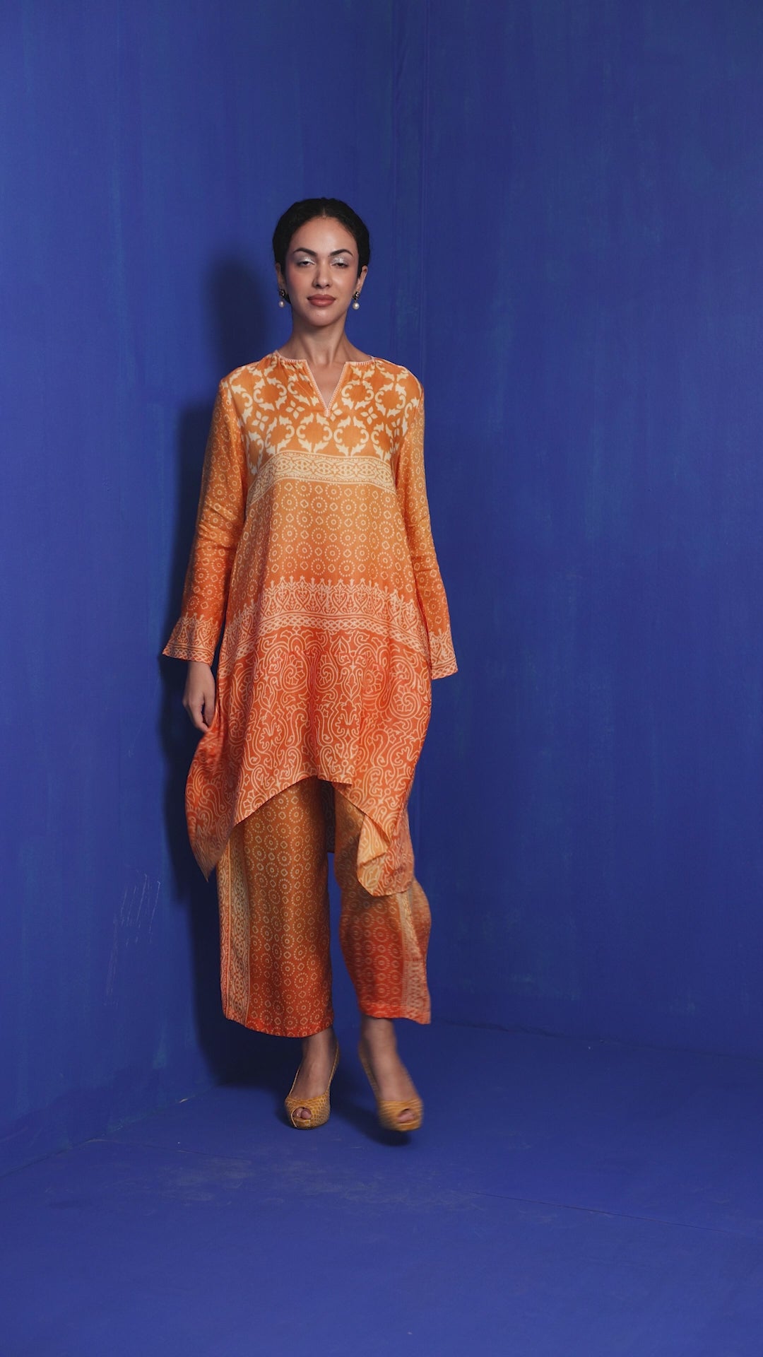 Orange Modal Block Printed Ombre Asymmetric Tunic Set