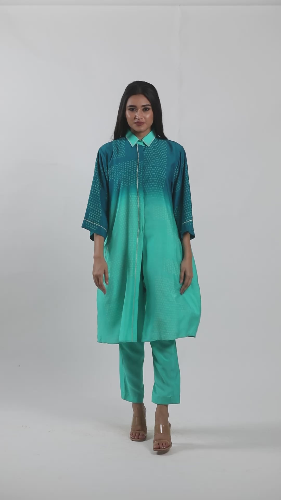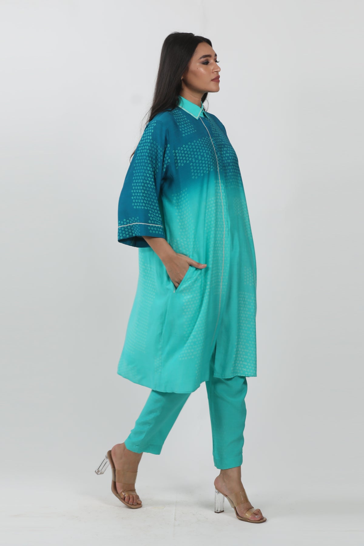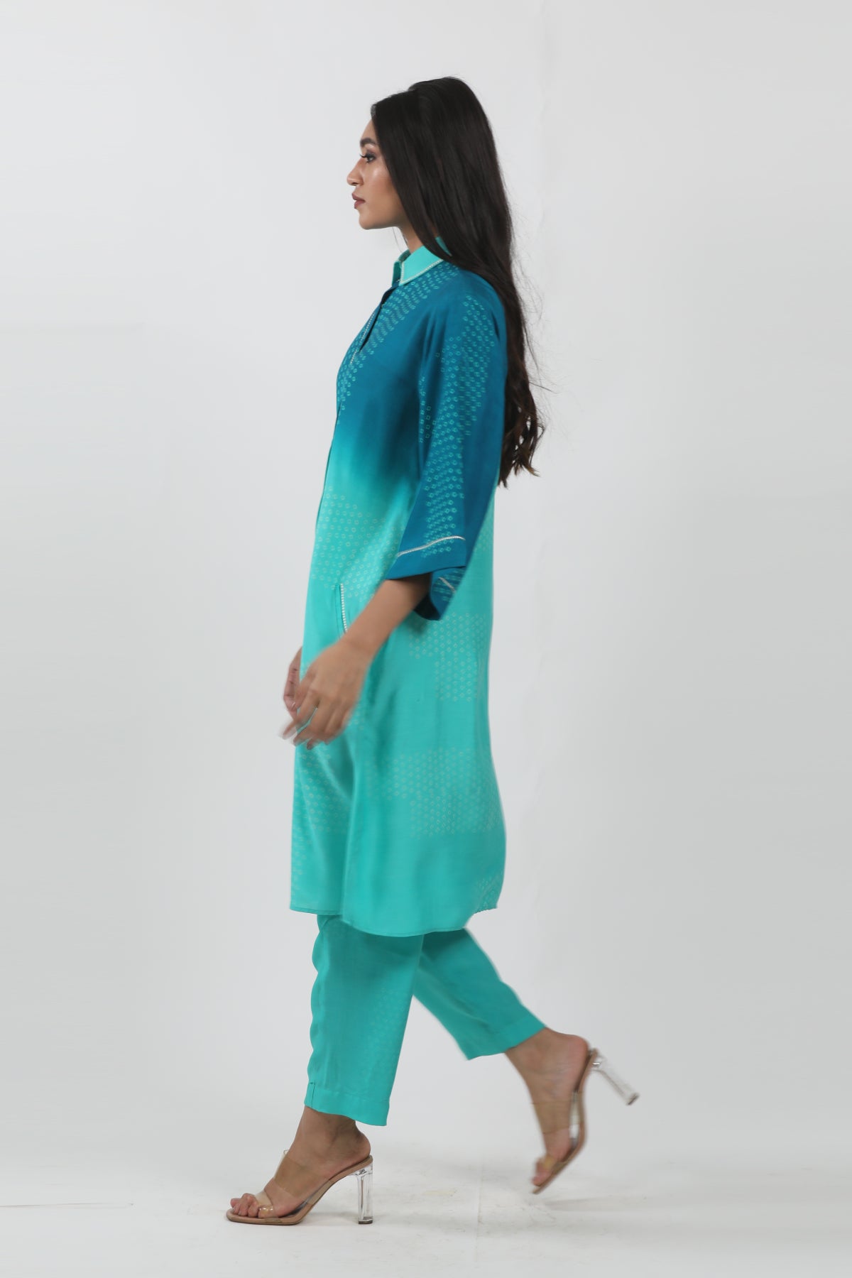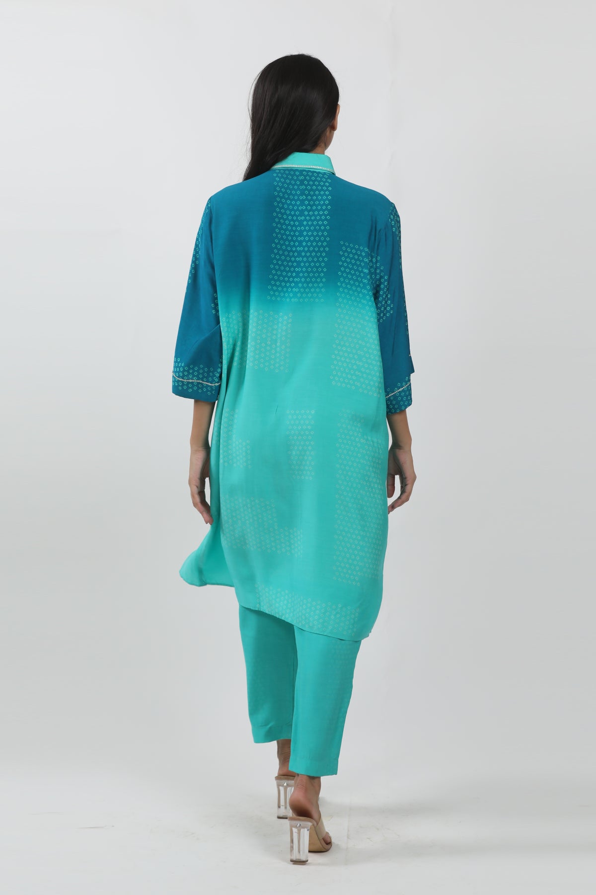 Turquoise-Shaded Modal Block Printed Tunic Set
